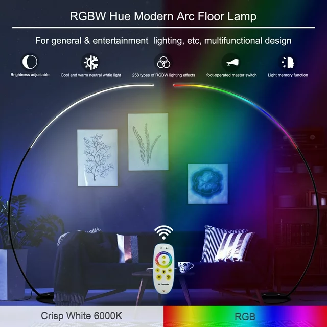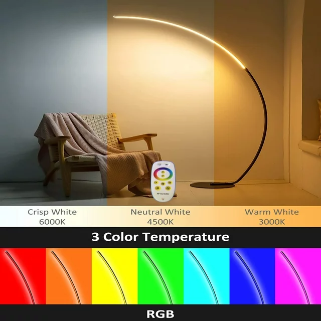 The tall, minimalist RGBW Modern Curve Lamp is the ultimate mood lighting for your living room, office, or bedroom. The sleek design melds perfectly with a contemporary flair to match any home decor style. It features a built-in RGBW LED Strip with 3 white lighting effects, 16 million color options and 358 kinds of light effects. This power-saving LED bulb is good for 20 years with normal use. You'll never have to replace a bulb and save 90% more energy compared to standard halogen or incandescent bulbs.