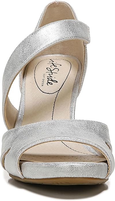 • Faux leather or fabric upper with an open toe, stretch gore panel, and crisscross strap