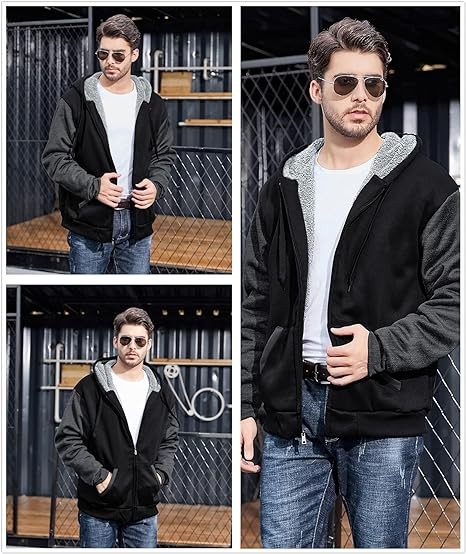 Little Beauty Hoodies for Men Zip Up Sweashirts Fleece Sherpa Lined Winter Wool Heavyweight Jacket