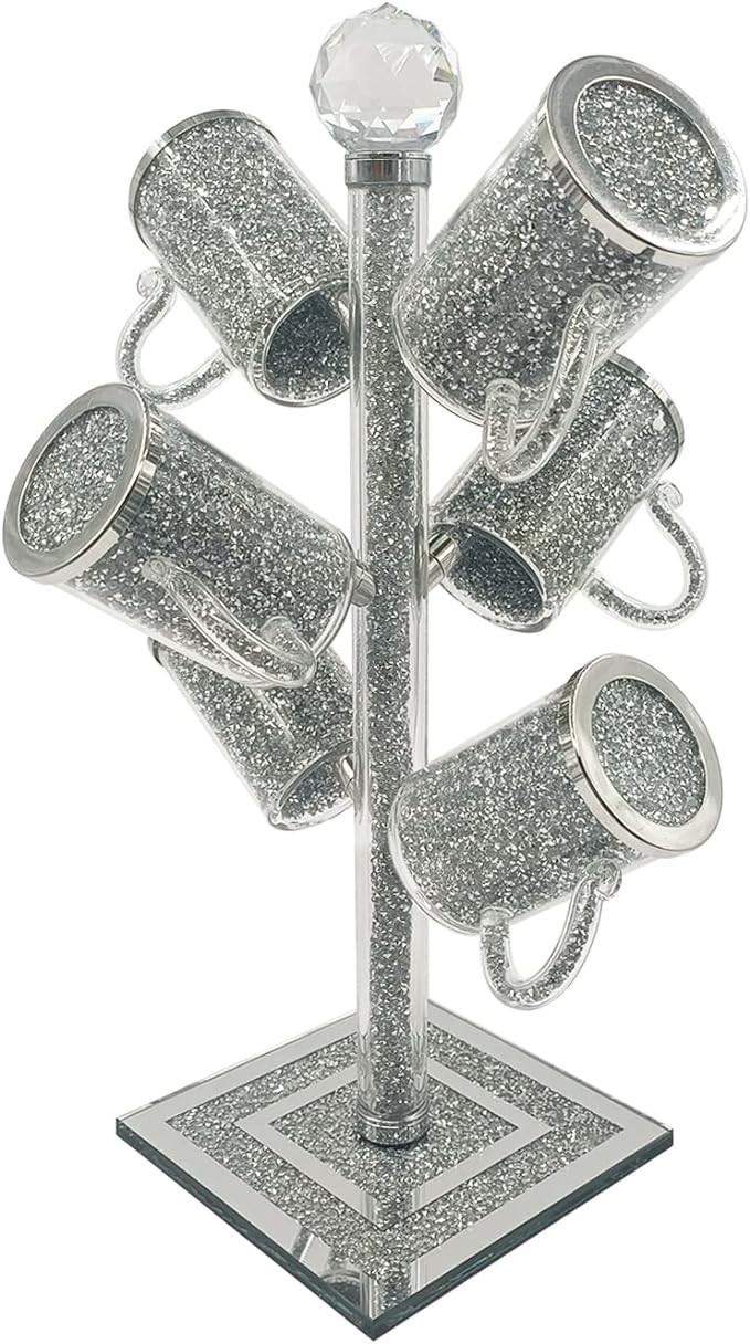 • A stunning eye catching and practical crushed crystal mug set body filled with crushed diamonds, sparkling your life and add some glamour to your decor, catch the light and glisten in your setting all day long.