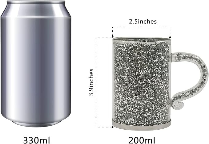 • Material: Glass mugs with handles made of tough GLASS, geared to withstand the wear and tear, anti-scalding and explosion-proof, the body is filled with sparkle CRUSHED DIAMONDS.