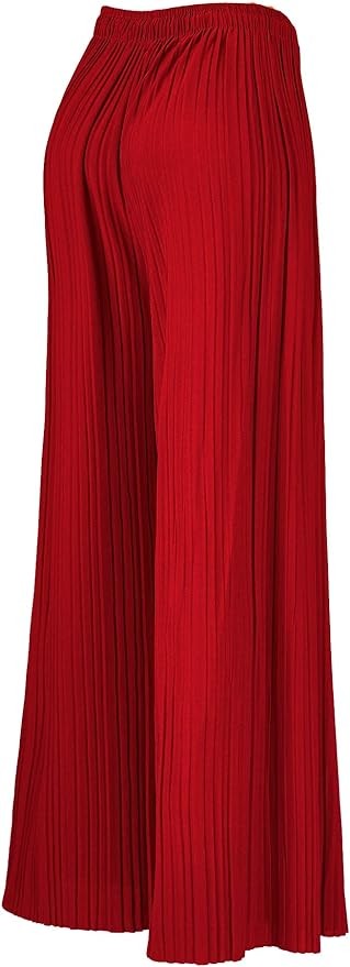 Lock and Love Womens Pleated Wide Leg Palazzo Maxi Pants with Drawstring or Elastic Band