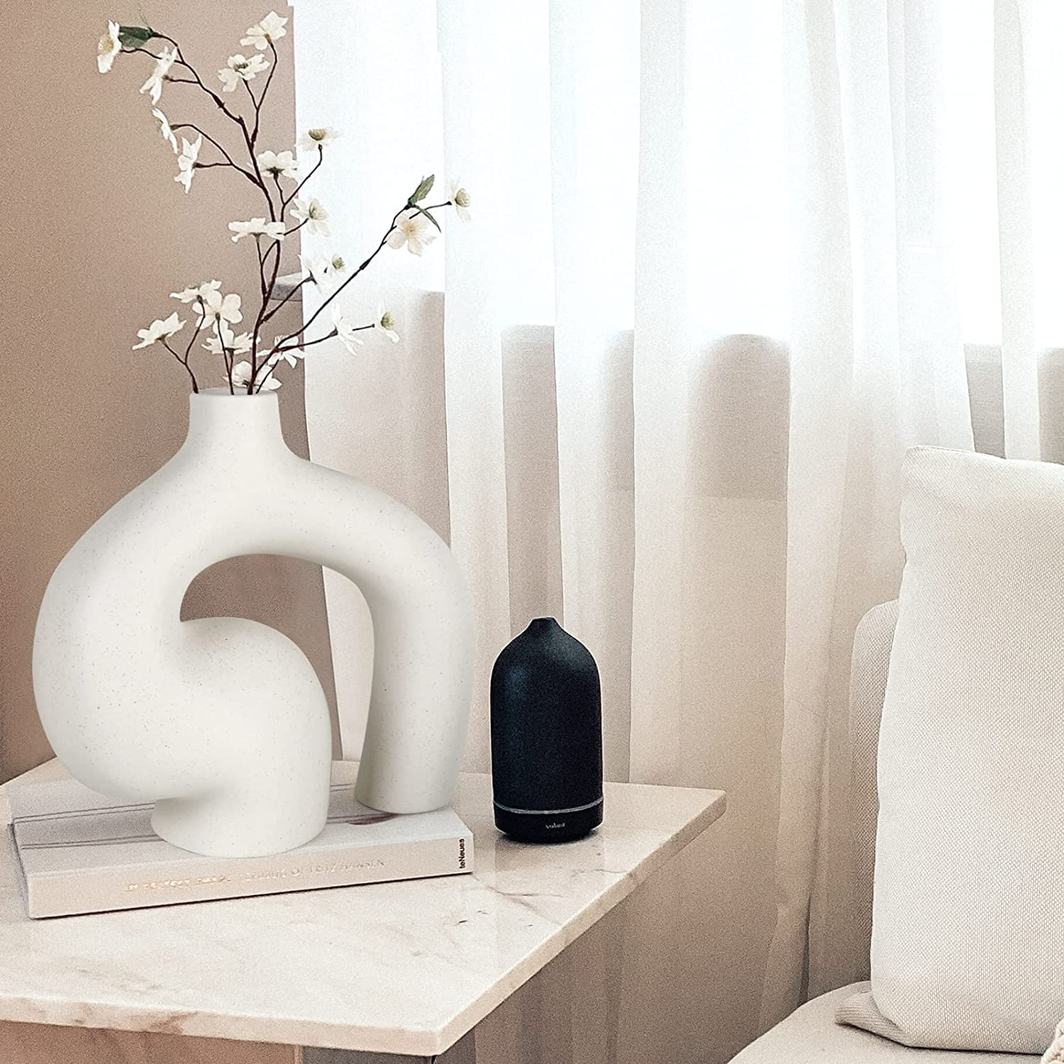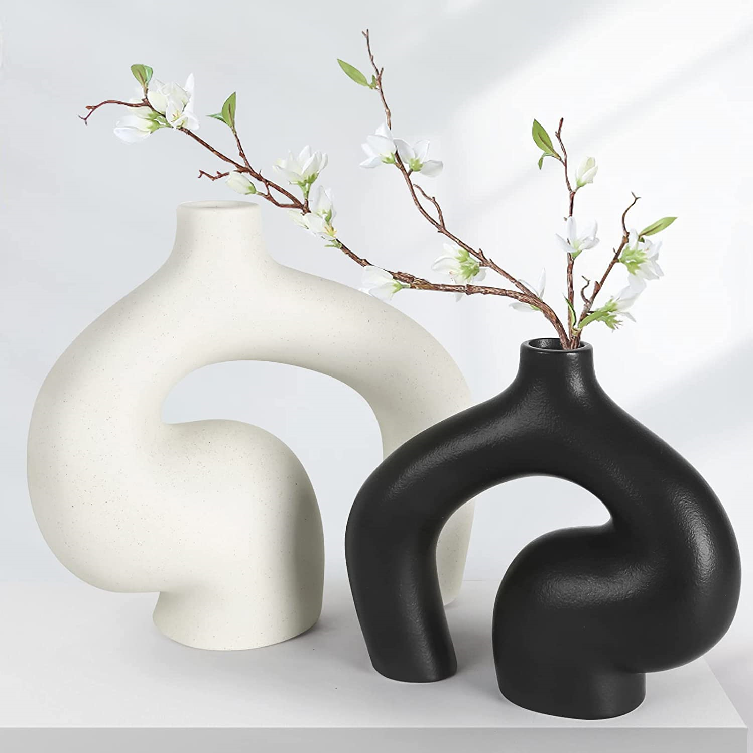 Lokeisna Ceramic Vase Set of 2 for Modern Home Décor, Minimalist Décor, Matte