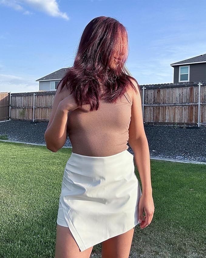 • These skirt shorts feature high waist, elastic back, ruched side, asymmetrical hem. The cute outfits for women are made of slight stretch PU leather which is perfect for spring, summer, fall, and winter.