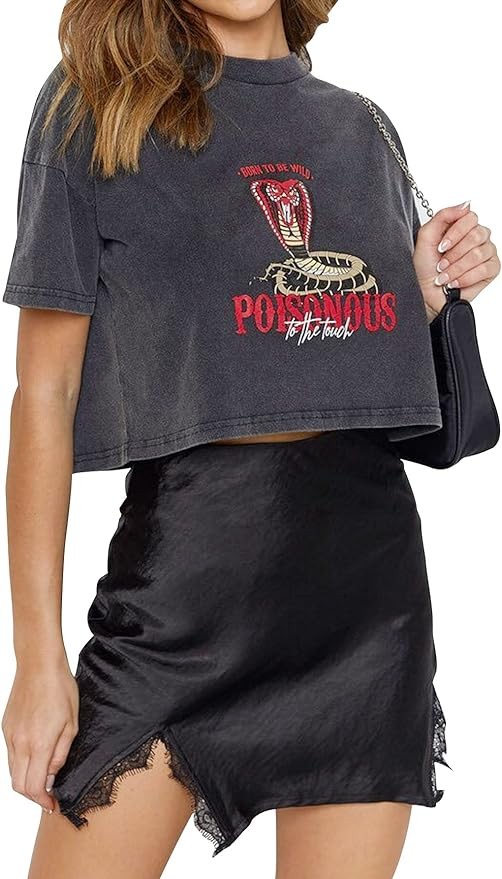 • Regular fit, soft fabric. Plain high waist above knee skirt with two side slit. Lace patchwork hem, cut out split, basic A-line satin skirt.