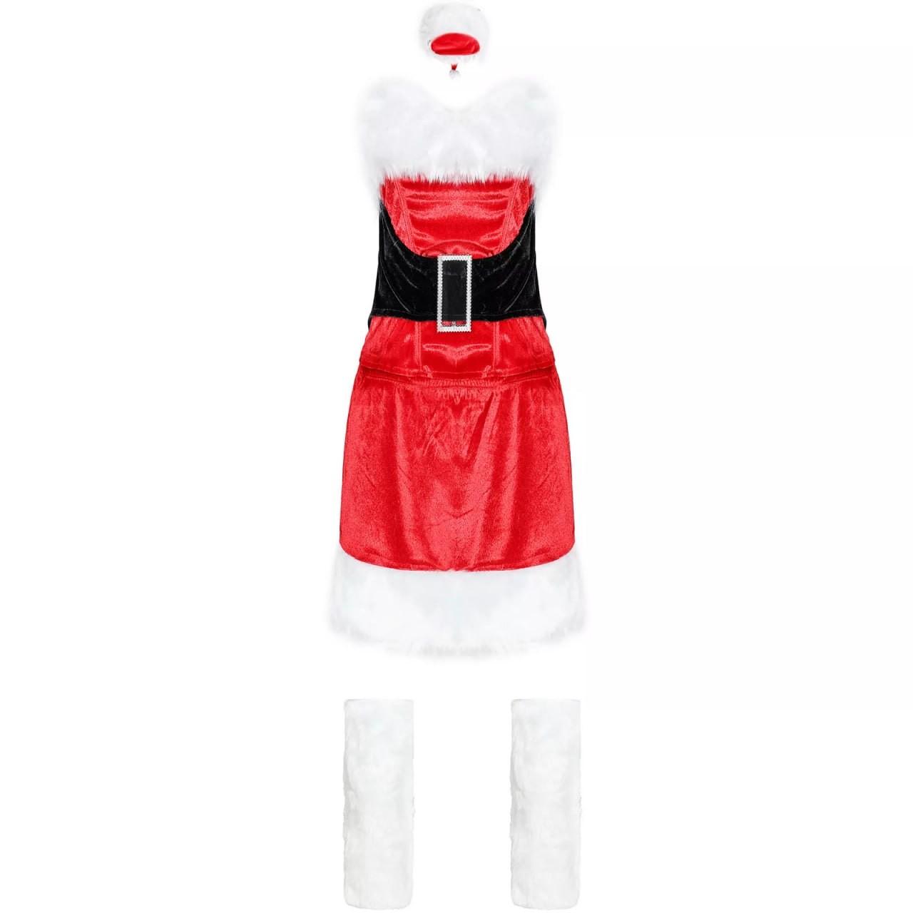 M-XL Christmas Stage Show Adult Sexy Women Costumes Uniform Set Skirt Dress
