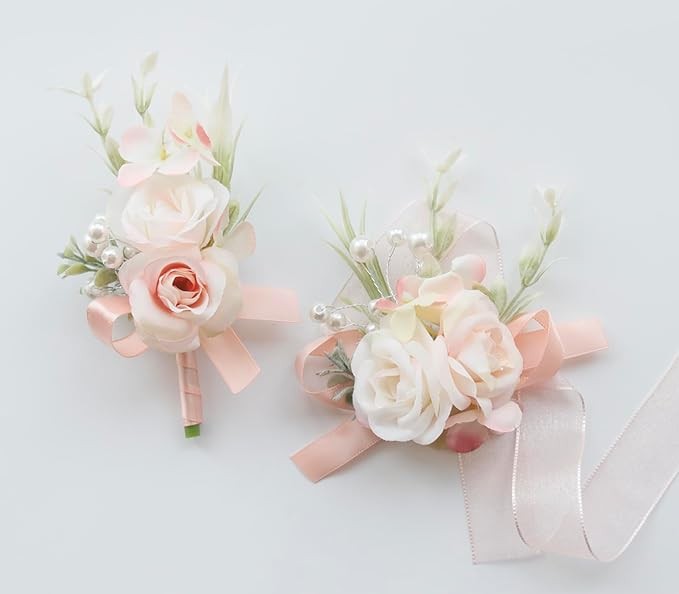 • 【Premium Material】The wrist corsage boutonniere set are made of high-quality delicate artificial flower, leaves and ribbons, dotted with other accessories. They are all handmade, exquisite and noble, and will not easily fade. Classic and elegant color combination, easy to match with your wedding, party or prom dress.