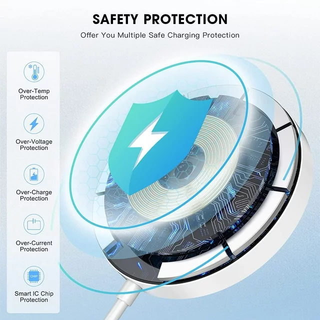 • 【Superior Safety】The wireless magnetic phone charger prevents the charger and your phone from overcharging, over current, over voltage, over heating, and short circuit. Provides you with a better and safer charging experience.The optimized magnetic design makes charging easier , improving energy conversion and reducing heat while charging.