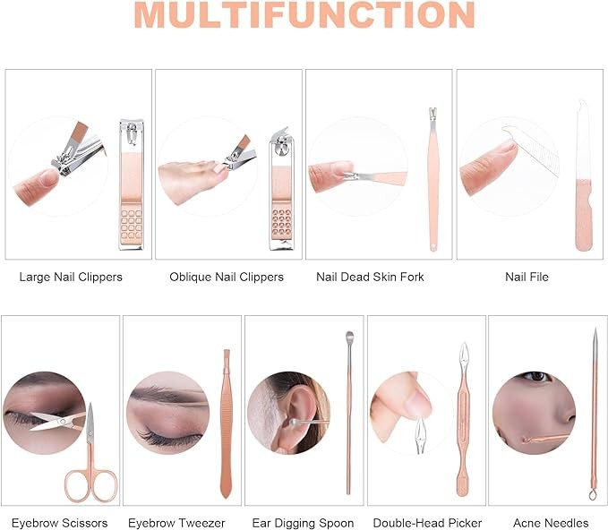 • NEW UPGRADED MATENAL: The manicure set is made of 100% top quality high strength steel, new anti-slip design, secondary grinding, sharp, strong, durable, pretty, it can be to provide a comfortable and sound life for you.