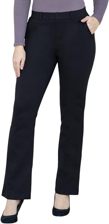 • EFFORTLESSLY ELEGANT FEATURES for successful women: these comfortable pants feature pull-on with elastic waistline and belt loops, four ways stretchy, slim fit, flat front, straight legs. Inseam: 29"