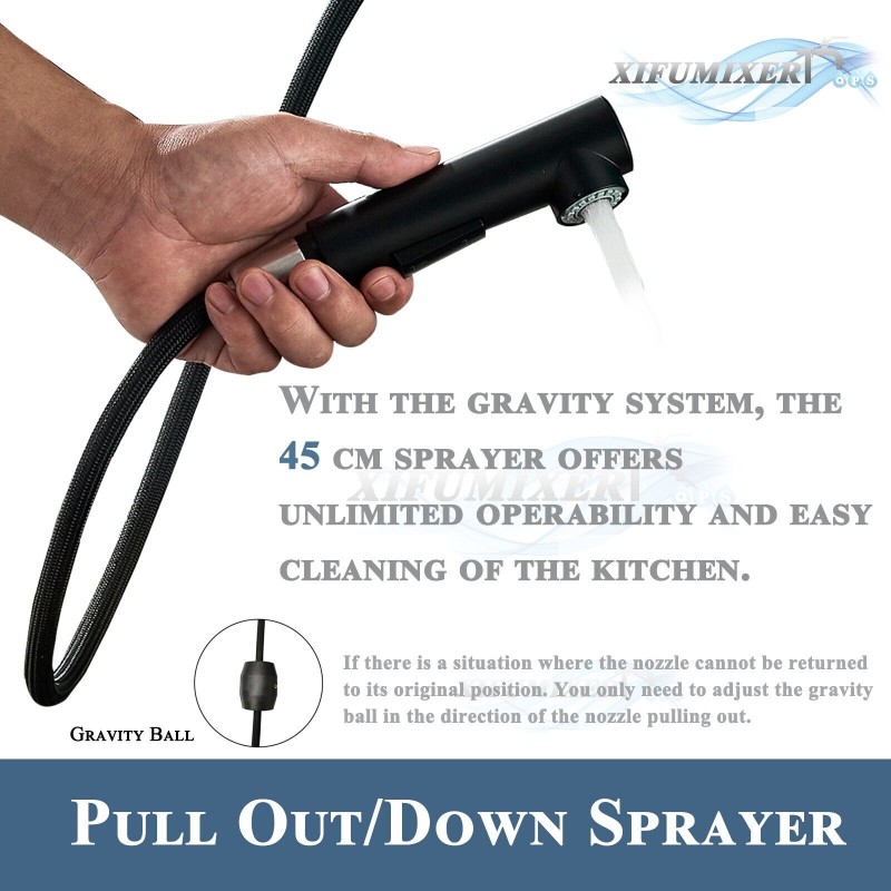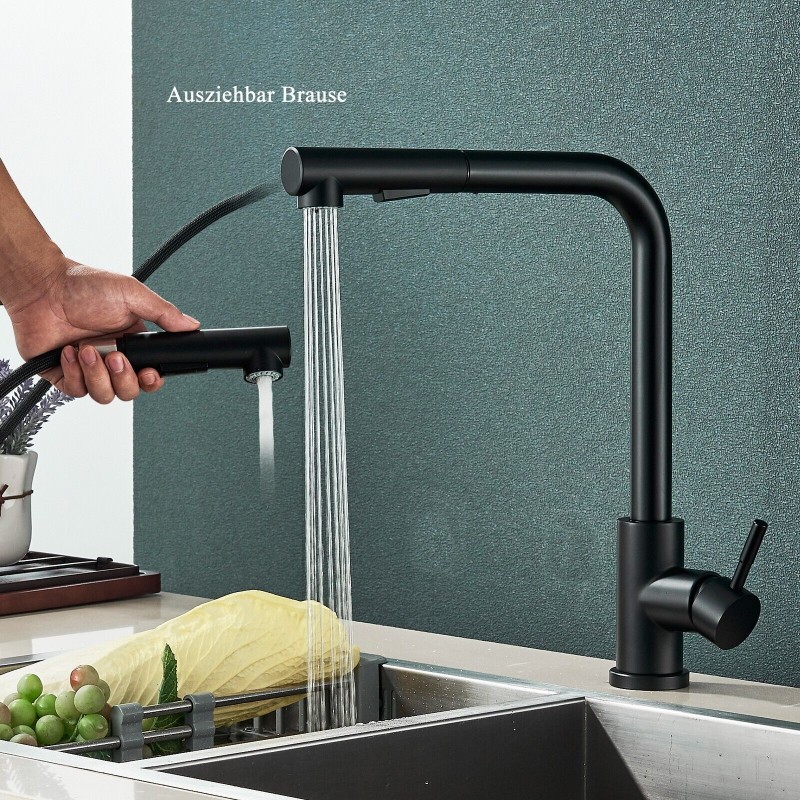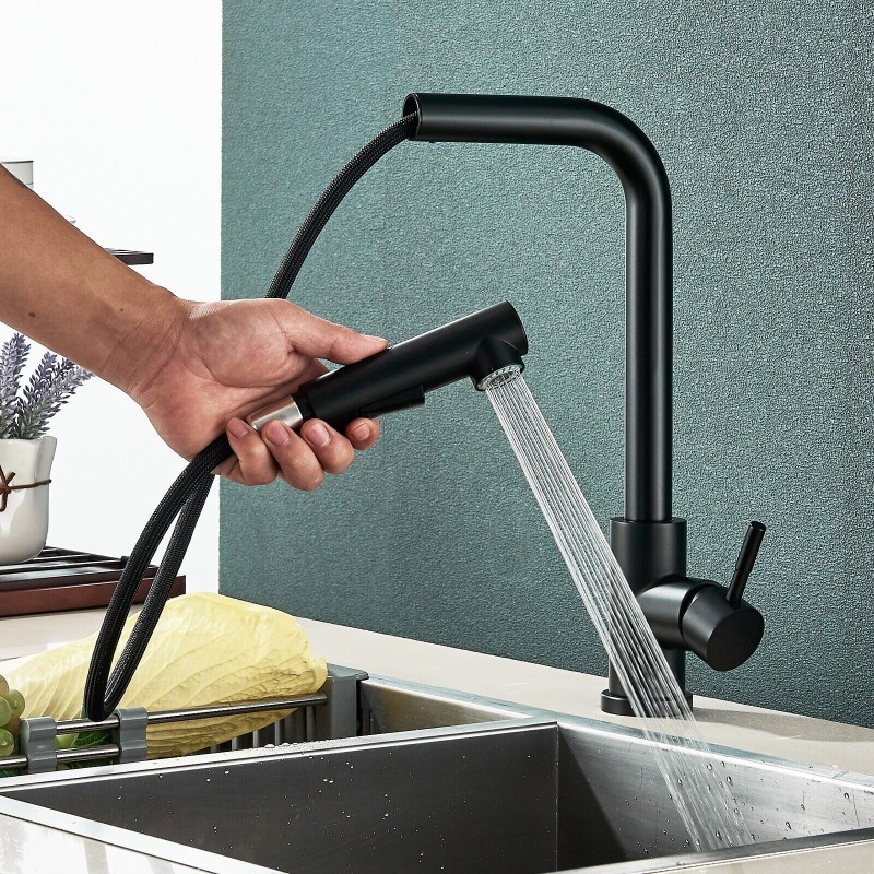 Matte Black Kitchen Sink Faucet Pull Down Sprayer Single Handle Swivel Mixer Tap