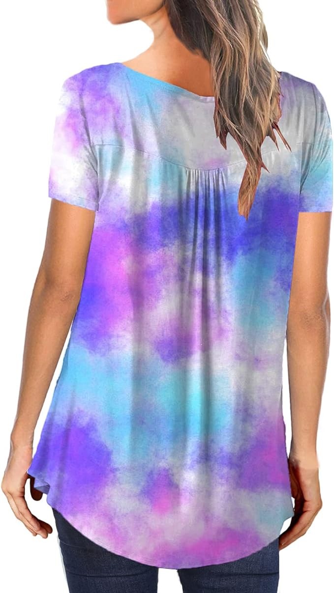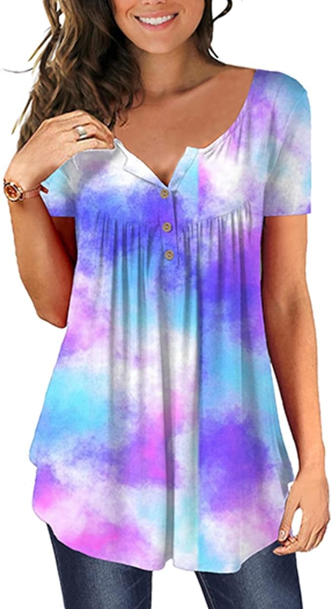 MAYAMANG Women's Floral Tunic Tops Casual Blouse V Neck Short Sleeve Buttons Up T-Shirts