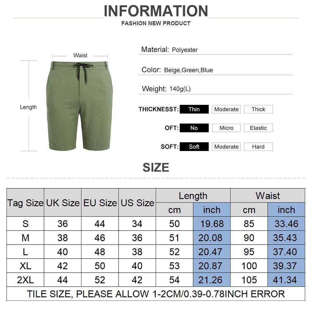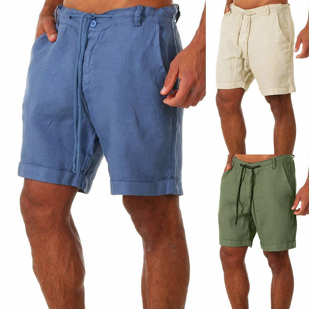 Mens Cotton Linen Shorts Elastic Waist Drawstring Summer Casual Loose Half Pants