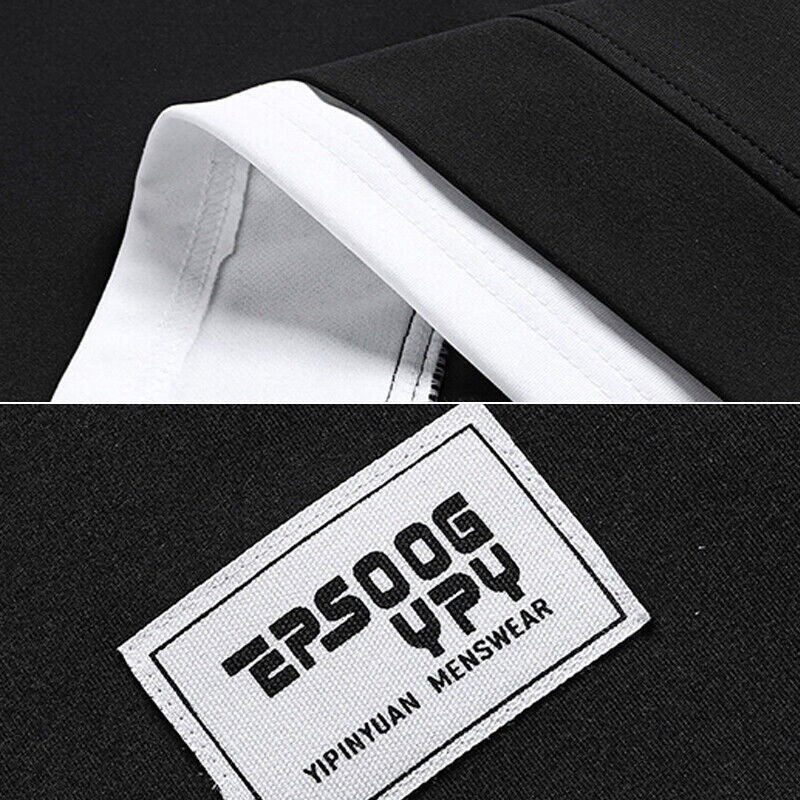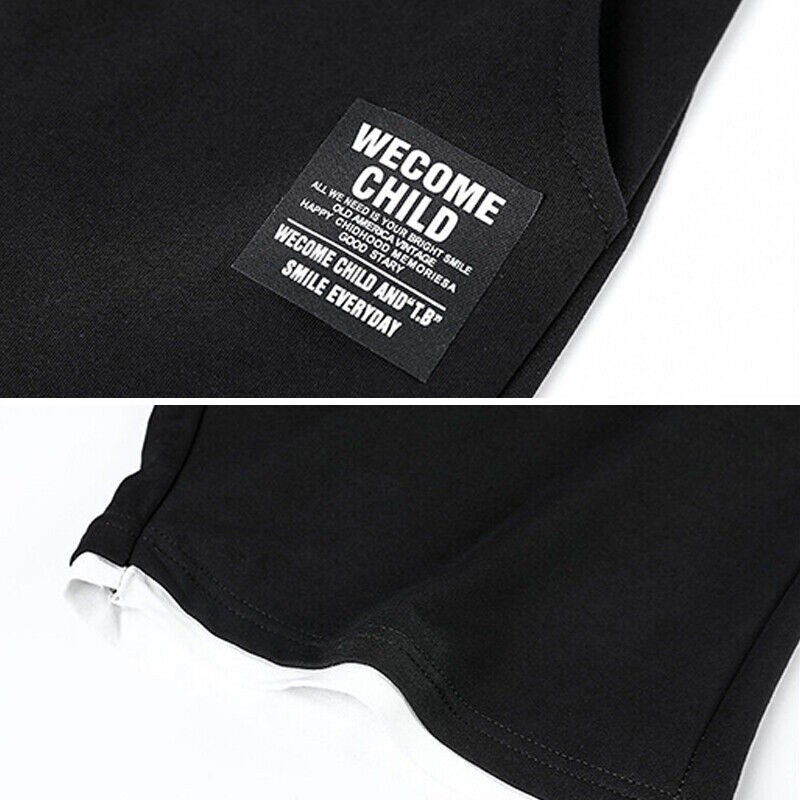 Mens Hip Hop Tracksuit T-shirt and Shorts Two Piece Set Patchwork Outfit Set