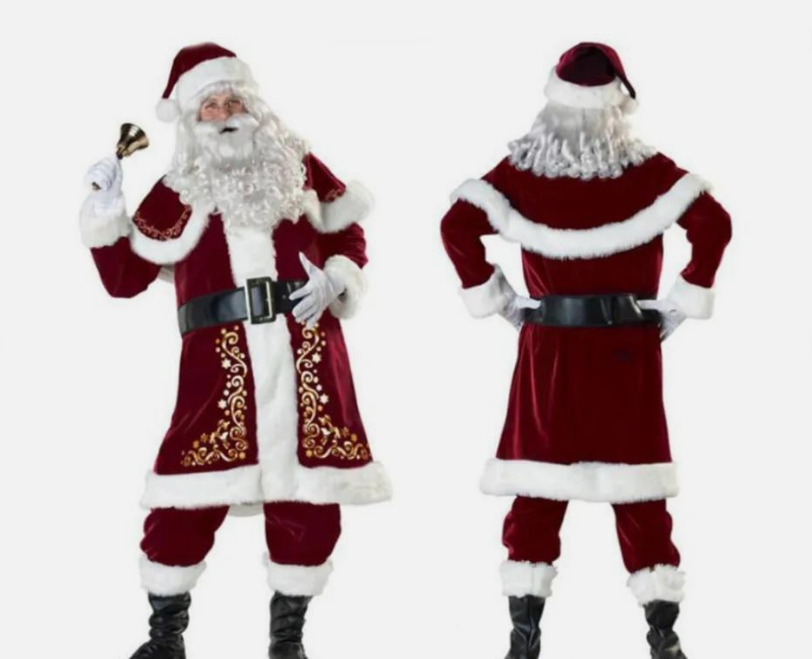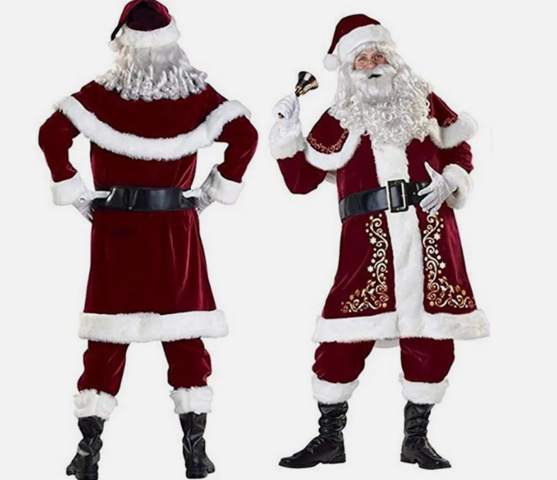 Men's Santa Costume Set 8pcs Velvet Christmas Adult Santa Claus Cosplay Dress Up