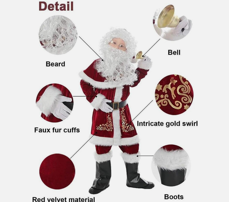Santa Claus Suit Adult Children's Christmas Costume Red Deluxe Velvet Fancy 8pcs Set