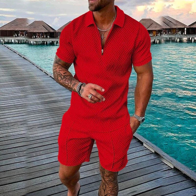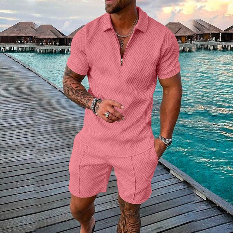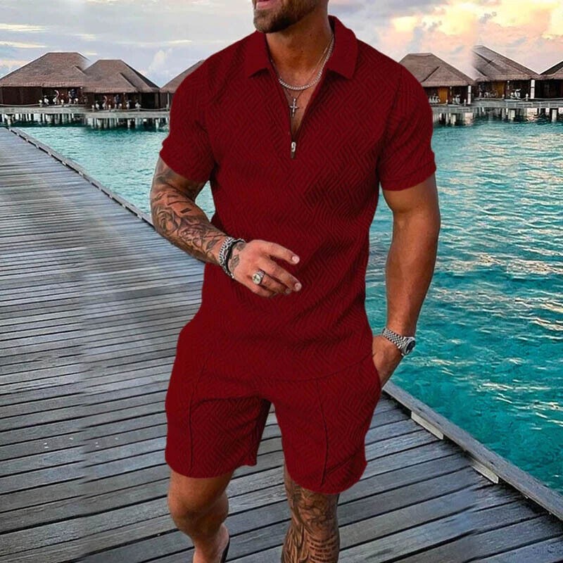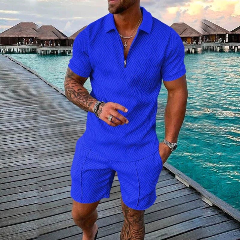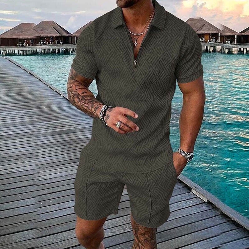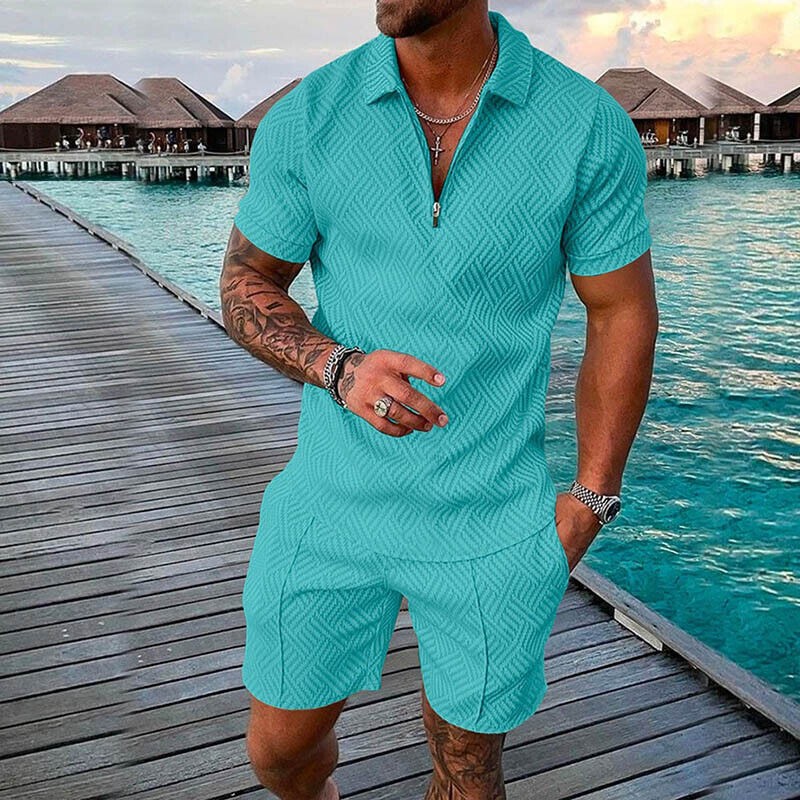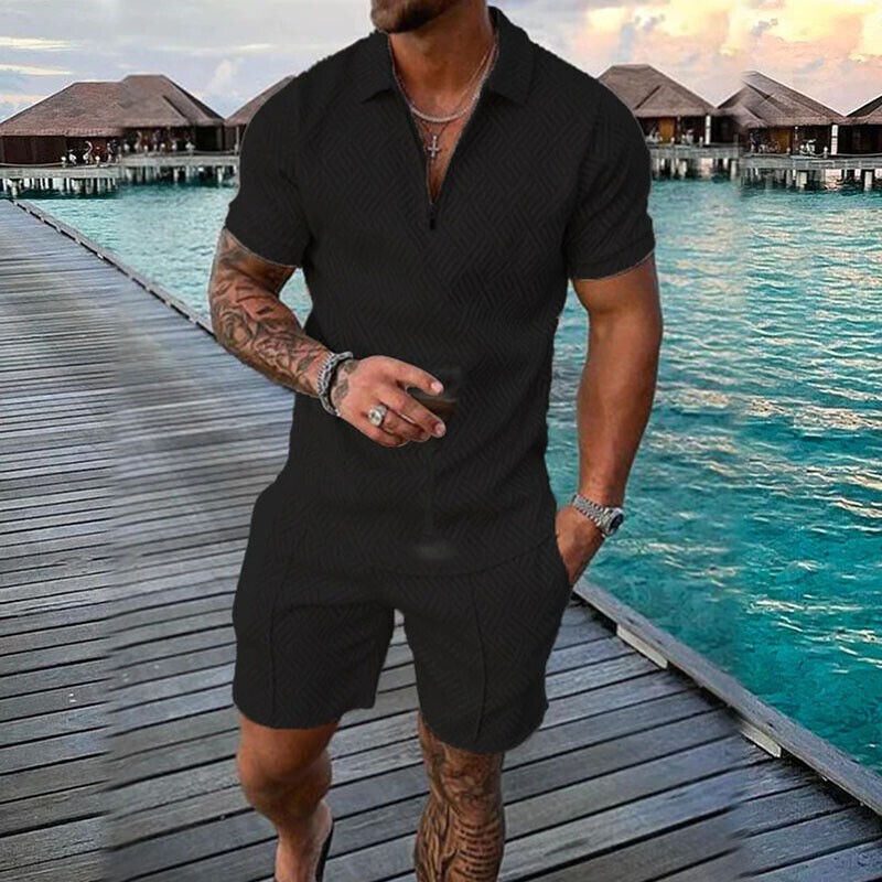 Mens Summer Outfit 2-Piece Set Short Sleeve POLO Shirts and Shorts Set
