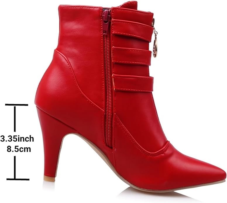 • Ankle Boots for Women :Elevate your style with these women's pointed toe buckle heel boots.These ankle boots, a convenient zipper detail that easy on and off. dress boots for women are complete with a comfortable rubber sole.
