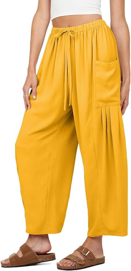 Unique Design: Wide leg tapered pants, high waisted, elastic waistband, adjustable drawstring, big side pockets, ankle length, casual and relaxed fit, solid color, slouchy palazzo pants, light colors are lined.