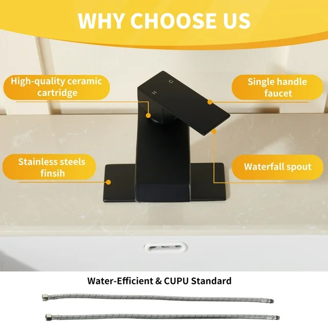 This Mondawe premium faucet features a modern and sleek simple design, with waterfall and flowing water design, suitable for use in various bathroom styles. This faucet offers outstanding performance, Single handle dual control, simplified installation and easy maintenance. The single-handle faucet is easy to use and beautiful - Ideal for both commercial and home use. Designed to fit 1 or 3-hole configurations, for 3-hole installation, the faucet comes with a Deck Plate, so you have no need to purchase it separately! This bathroom faucet has upgrade quality and can make your bathroom more advanced, you deserve a better life with a high-quality bathroom faucet.