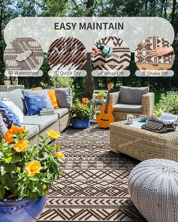 MontVoo-Outdoor Rug Carpet Waterproof 5x8 ft Reversible Patio Rug RV Camping Rug-Plastic Straw Rug Outside Indoor Outdoor Area Rug for Patio Deck Balcony Picnic Beach Outdoor Decor Boho Beige Brown