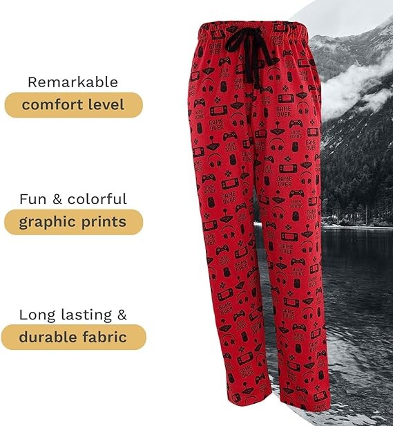 Mooselander Mens Lounge Comfy PJ Pants, Fun Prints, Lightweight Jersey Fabric, Elastic Waistband, and Convenient Side Pockets