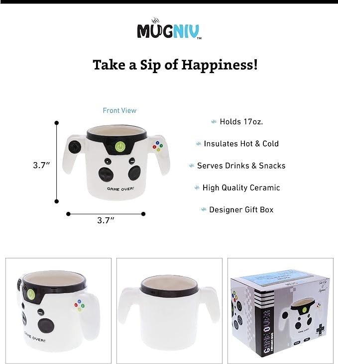 • <b>100% PRODUCT SATISFACTION GUARANTY FROM OUR COMPANY – Take a sip of happiness with this no risk purchase! If you are not 100% happy with the purchase of our MUGNIV Video Game Controller Cup Novelty Mug, 12.4 Oz Cups for Coffee, Tea, & Hot Chocolate, send it back to us for a full refund or replacement, no questions asked. Guaranteed great USA customer service.