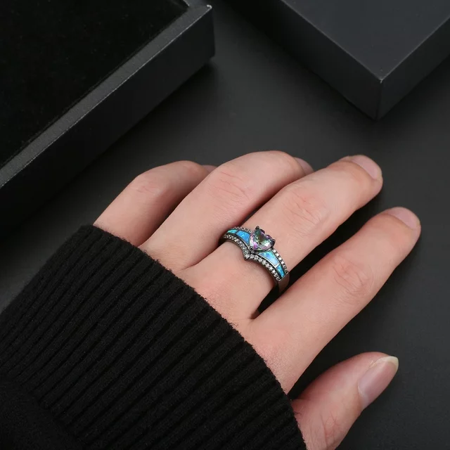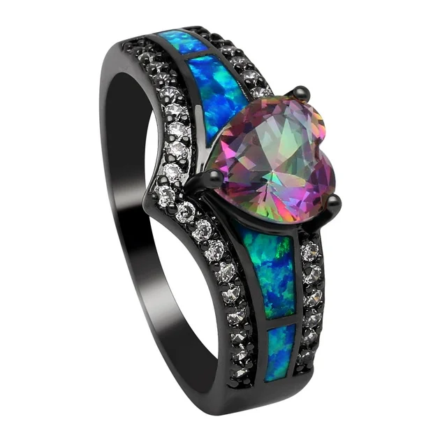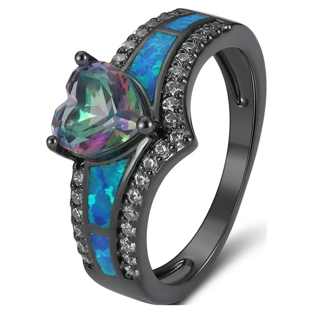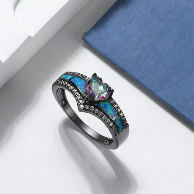 Introducing the elegant Mystic Heart Ring from the Ginger Lyne Collection, a perfect choice for females seeking style and sophistication. This ring, ideal for engagement or special occasions, features a stunning heart-shaped simulated opal in captivating purple, blue, or mystic rainbow colors. The black-plated design adds a unique touch, making it a standout piece. It's a versatile accessory suitable for women of all ages, perfect for moments like engagements, birthdays, anniversaries, or just to show affection. Whether you're shopping for your girlfriend, wife, daughter, or sister, this ring is a thoughtful choice that combines affordability with luxury. Enhance your jewelry collection with the charm and allure of the Mystic Heart Ring, a symbol of love and commitment.