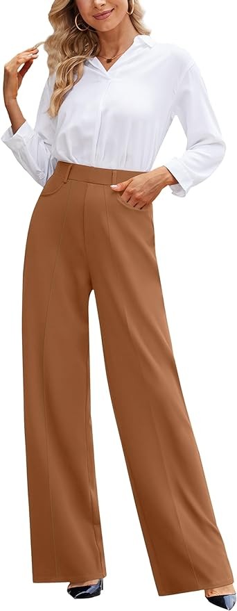 • [Professional Look] This wide leg dress pants/work pants for women features wide leg, belt loops, high waist. There are pleats on the front and back of the dress pants/slacks, which can make these dress pants look more straight and delicate, giving you a professional look.