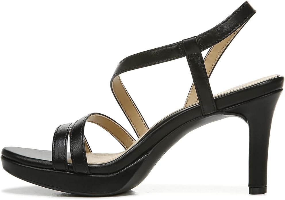 • Women's heeled dress sandal with strappy details and subtle platform sole
