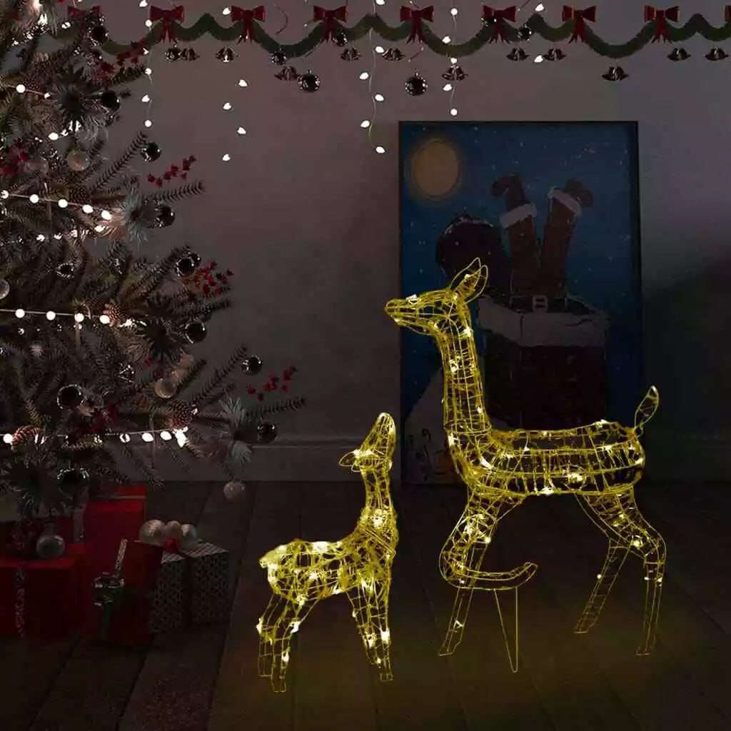 NNEVL Acrylic Reindeer Family Christmas Decoration 160 LED Warm White