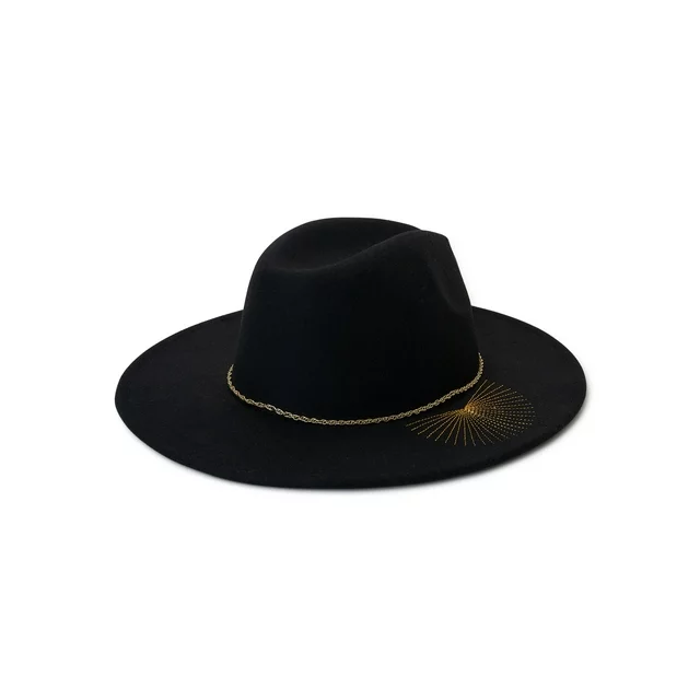 Top it off! Time and Tru's Fedora Hat completes any outfit to perfection. This fashion-forward hat features chic chain trim, embroidered accents and a wide brim for added coverage. Such a cute accessory for a sunny day. Exclusively at Walmart.