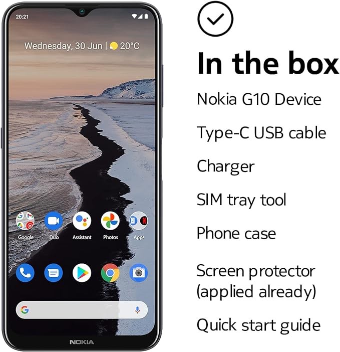 Nokia G10 | Android 11 | Unlocked Smartphone | 3-Day Battery | 3/64GB | 6.52-Inch Screen | 13MP Triple Camera | Polar Night,Blue
