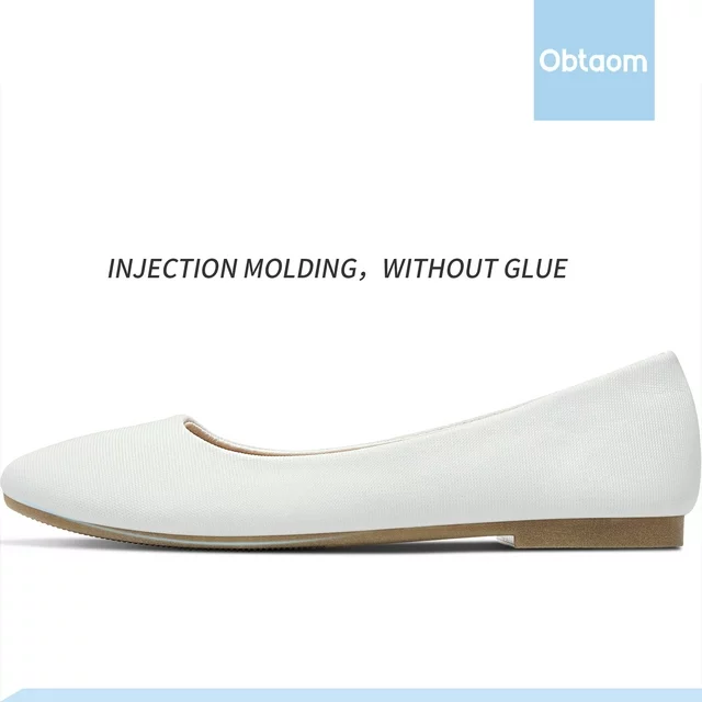 Obtaom Women's Round Toe Ballet Flats,Cute Textile Ballerina Flats,Comfortable Faux Leather Insole Low Heels Dress Shoes For Ladies (White,US9)