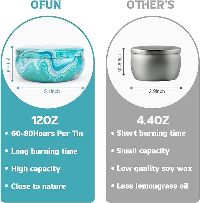 ?【LONG BURNING TIME LARGE CANDLES】- Each large outdoor candle can burn for 60-80 hours. Metal tin size: 5.1 x 5.1 x 2.1 Inches (L x W x H). No matter how long it burns, the fragrance is not lost.
