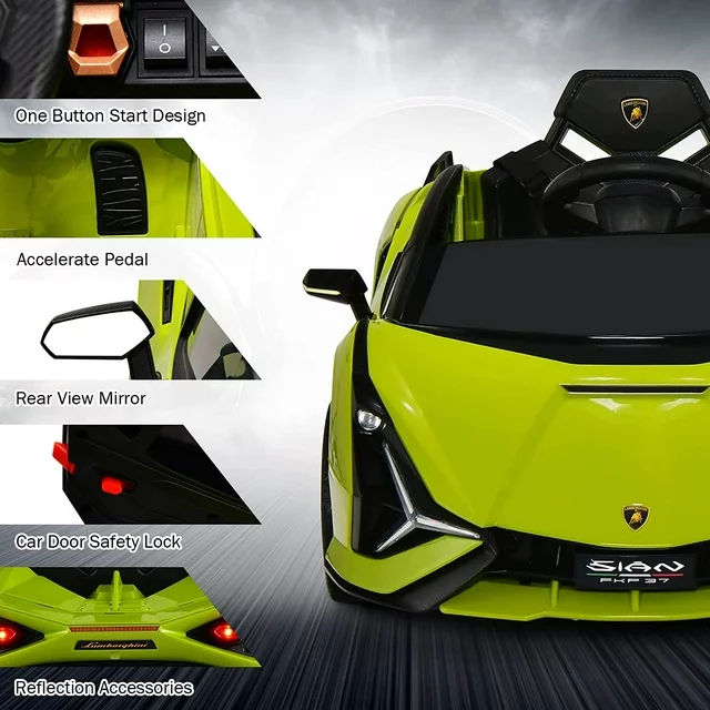 ?LICENSED BY LAMBORGHINI: Italian Lamborghini licensed ride on car, scaled down according to Lamborghini real car. From Lamborghini’s design concept, details determine quality. High appearance level ride on toy car with full functions. Adopts the mechanical arm of automobile manufacturing industry to spray evenly, so that the bright paint surface does not fade.