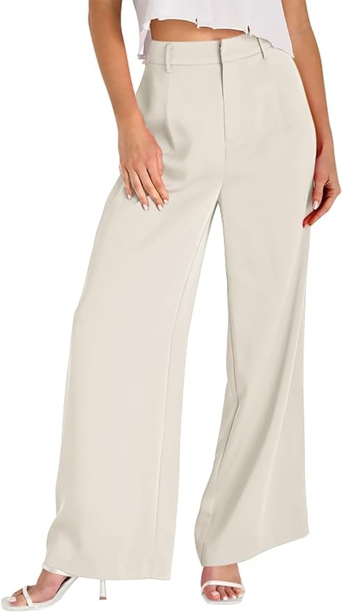onlypuff Women Pants Work Business Dressy Trousers Wide Leg High Waisted Slacks with Pockets