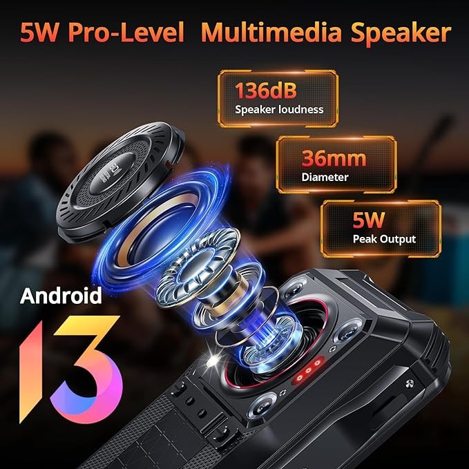 • ?【5G MediaTek Dimensity 6100+& 24GB+256GB】The 2.2 GHz high-frequency 5G Rugged smartphone features an octa-core Dimensity 6100+processor and utilizes an efficient 6nm advanced manufacturing process to avoid latency, crashes, or overheating issues. With 24GB RAM (8GB + 16GB virtual RAM) and 256GB ROM, it allows for smooth simultaneous operation of multiple memory-intensive applications and provides ample storage space. Comes with Android 13 OS, new permission system provides more safer, private environment.