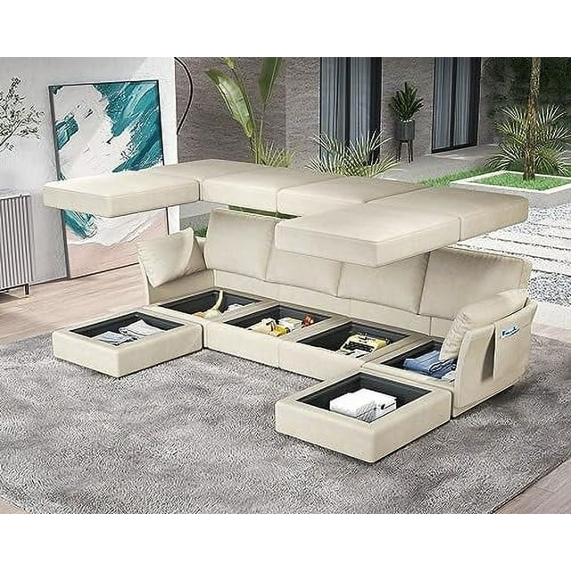 Papajet Modular Sectional Sofa Upgrade your living space with our luxurious and customizable oversized sectional sofa set. Experience unbeatable comfort, quality, and style with sleeper sectional sofa with storage, large sectional sofa, modern sectional sofa, gray sectional sofa for living room. Product Features: 1. User-friendly combination design, explore more possible combinations. 2. High-density foam backrest, comfortable and soft. 3. Sturdy and durable solid wood frame. 4. Removable storage bag, Storage Space in Every Seats. Fabric Material: Chenille Recommended Place - Living room- Bedroom - Office- Apartment - Entertainment room