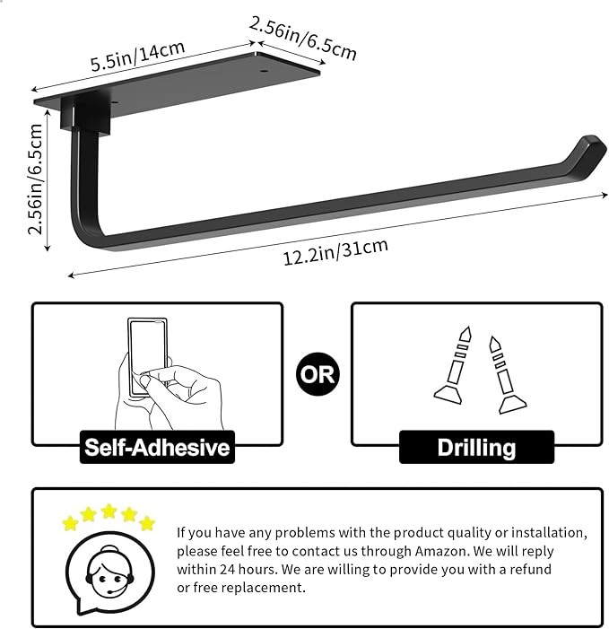 Paper Towel Holder - Self-Adhesive or Drilling, Matte Black Paper Towel Rack Under Cabinet for Kitchen, Upgraded Aluminum Kitchen Roll Holder - Lighter but Stronger Than Stainless Steel!
