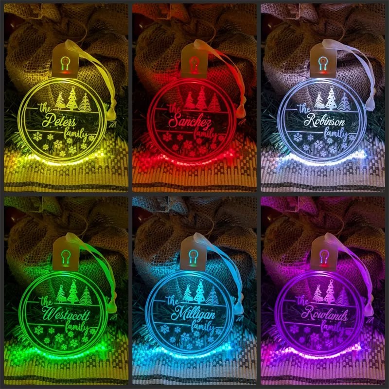 Personalised Name Christmas Trees Bauble LED Light Hanging Decoration