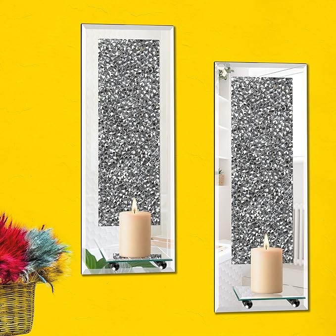 Home Décor: High-quality beveled silver mirror on top, with luxurious crushed diamond shape in middle, suitable for bathroom, entryway, living room and more. Trust this gorgeous mirror will help to get a lot of compliments
