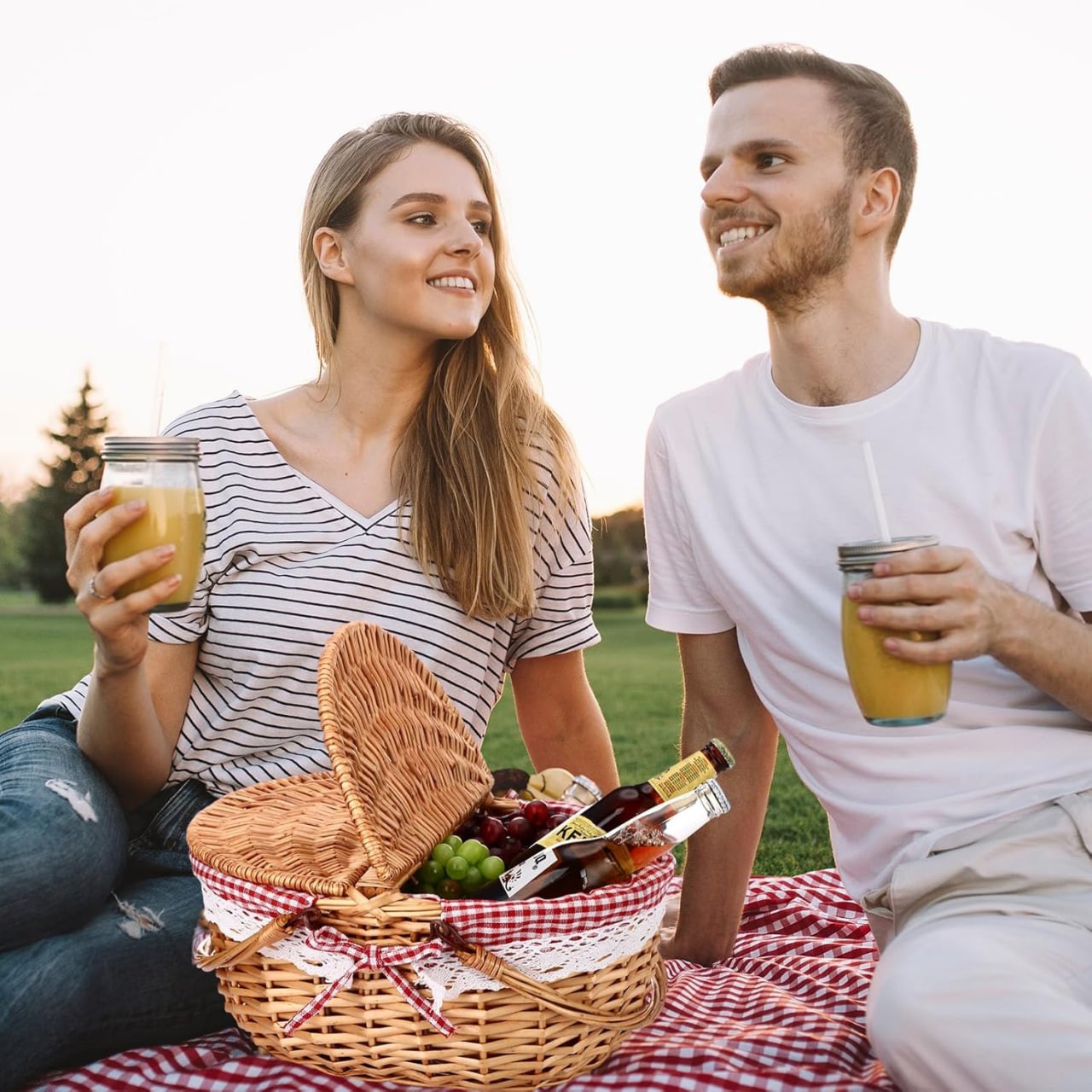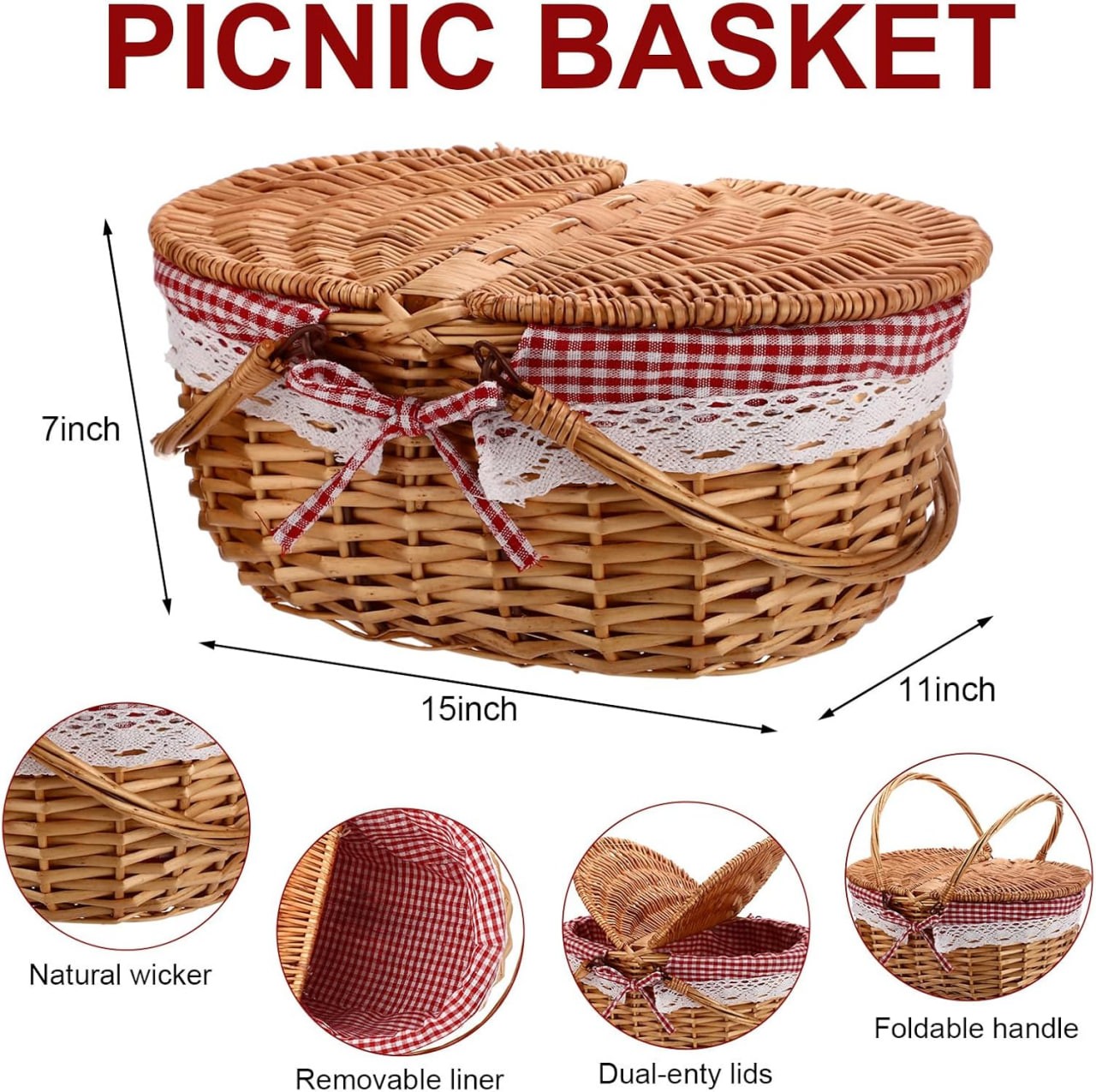Picnic Basket with Liner Set: this picnic basket measures approximately 14.9 x 11 x 7 inches, making it the ideal size to carry your picnic essentials; Designed keeping customer needs in mind, the set includes a generously sized mat of about 59 x 59 inches for a comfortable setting and a bamboo plate about 9.8 x 9.8 x 0.8 inches, which elevate your outdoor dining experience