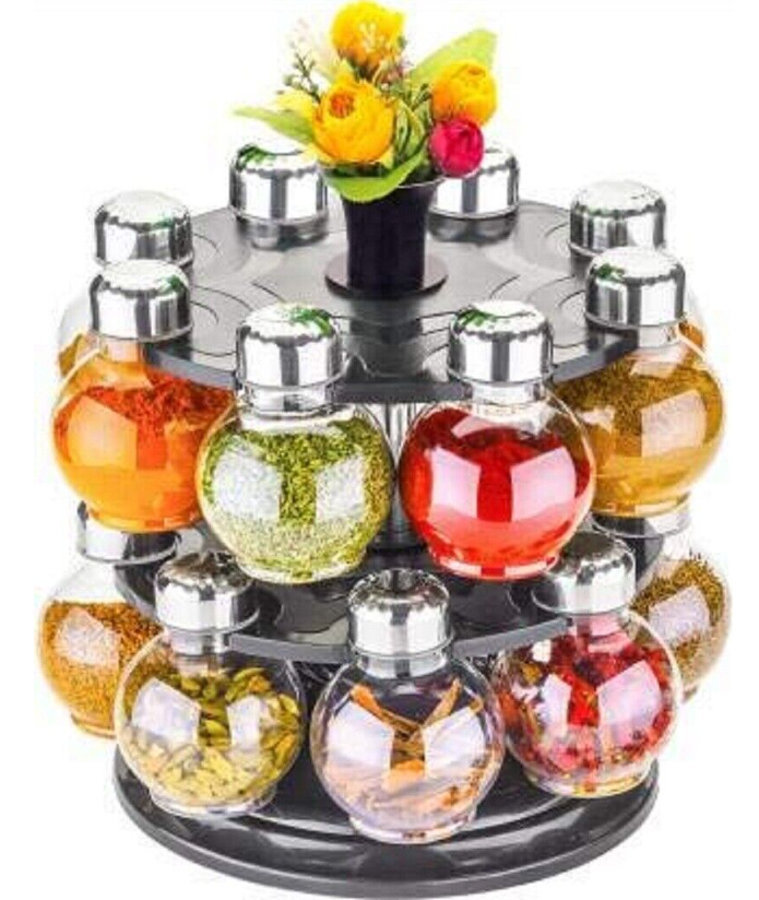 Plastic 360 Degree Revolving Transparent Spice Jar For Kitchen