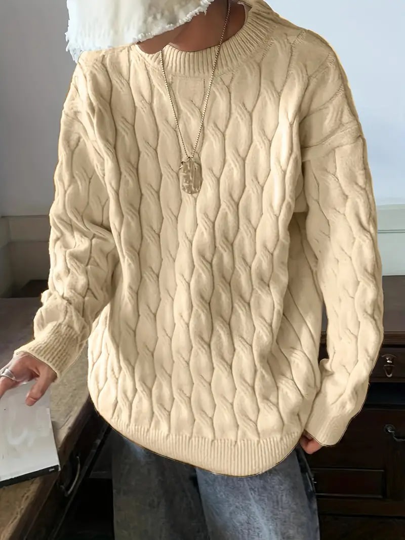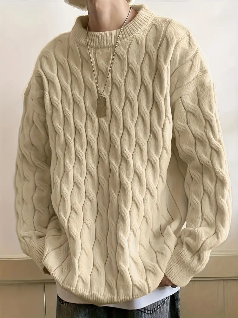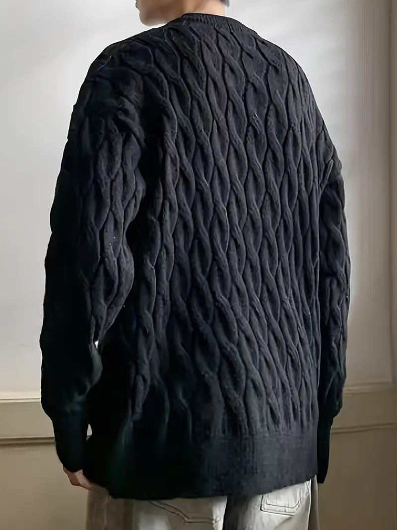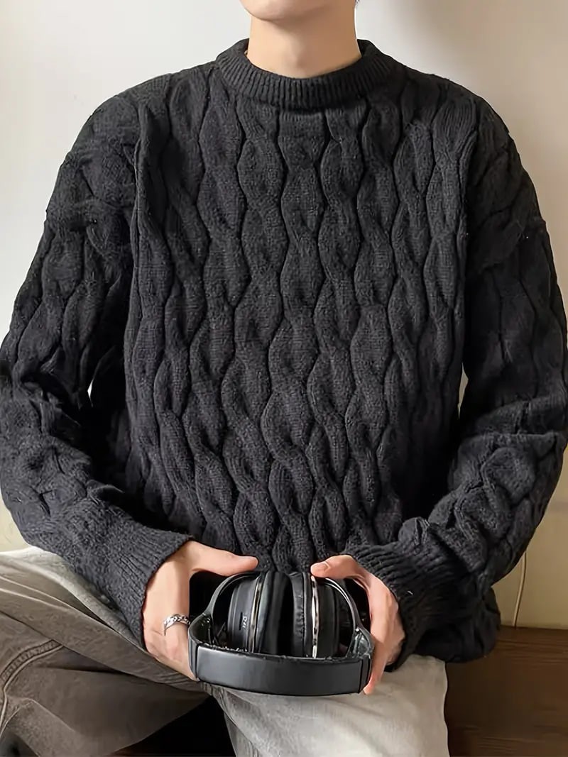 Plus Size Men's Casual Style Long-sleeved Crew Neck Sweater, Fashion Loose Slightly Stretch Comfortable Top For Big & Tall Guys