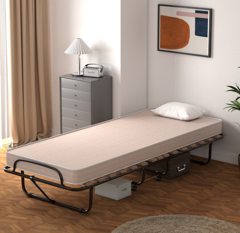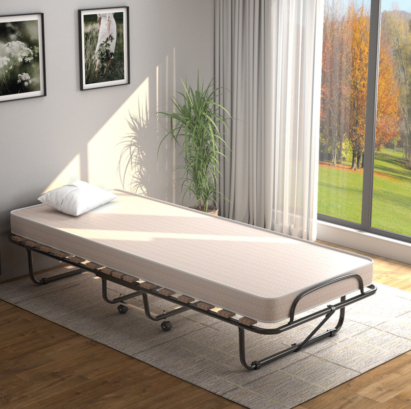 Portable Folding Bed with Memory Foam Mattress Rollaway Cot Made in Italy