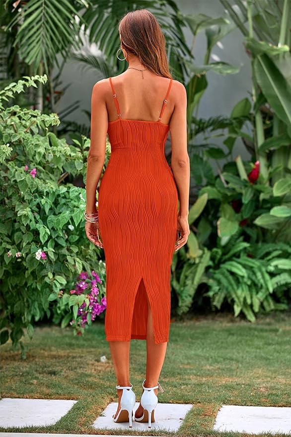 TRENDY DESIGN: Bodycon Dress for Women/Midi Dress for Women/Spaghetti Strap Dress for Women/Fitted Dress for Women/Cami Dress for Women/Pencil Sheath Dress for Women/Sleeveless Dress for Women/Backless Dress for Women/Party Dress for Women/Womens Sundress/Back Slit Dress/Knit Dress for Women/Summer Dress for Women/Beach Dress for Women
