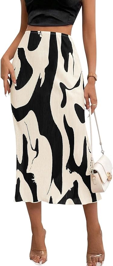 FEATURES: Unique print women's skirts, Classic plisse midi skirt, Elastic waistband, High waisted skirts for women trendy, Ruffle hem long skirt. A versatile womens skirt goes well with any types of top, tube, tank, shirt, blouse, etc.