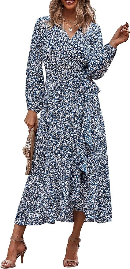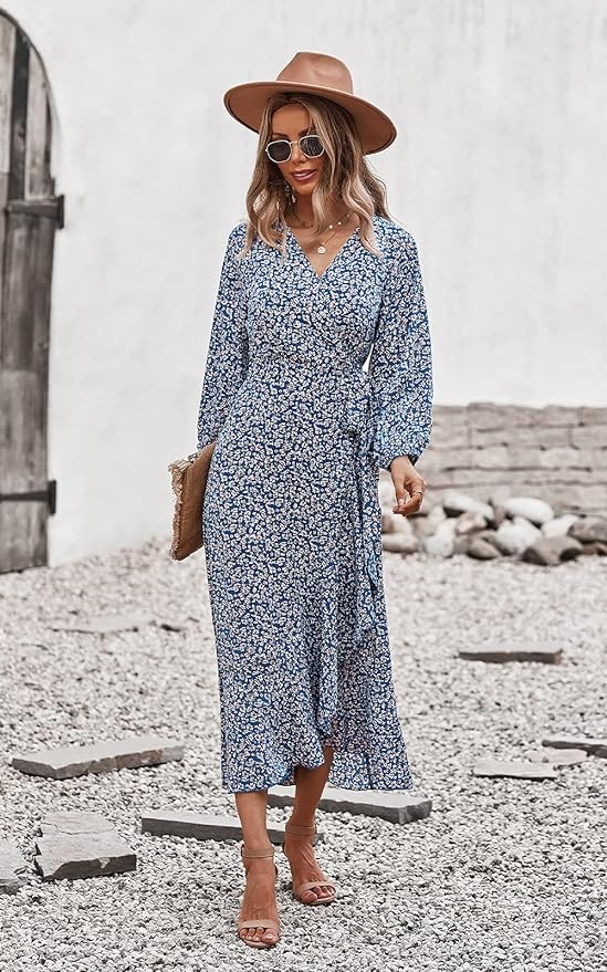 • UNIQUE DESIGN: Boho long dresses for women/High split maxi dress/Long sleeve maxi wrap dresses for women/Long flowy dress for women/Wrap v neck maxi dress/Casual beach long dresses/Long wrap dress with ruffles