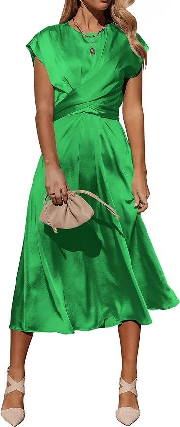 STYLISH FEATURES: The Satin Dress Features In Tie Waist In The Back, Adds A Sense Of Elegance And Classy. Women Midi Dress With Cap Sleeve Design Never Out Of Date, Shows Off Your Generous And Gorgeous. This Crewneck Swing Dress Is Lightweight And Breathable, Easy Dress Up And Down. Ladies A-Line Dress Can Modify Your Figure Well, Hide The Little Tummy. Classic Solid Color Style More Easy To Match Attractive And Fashionable Looks.